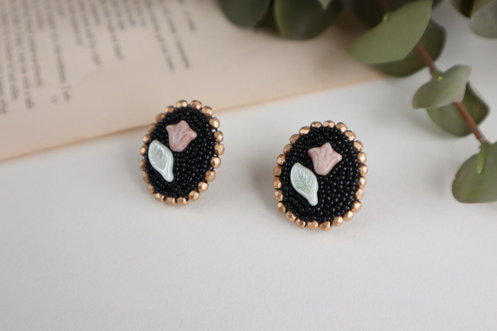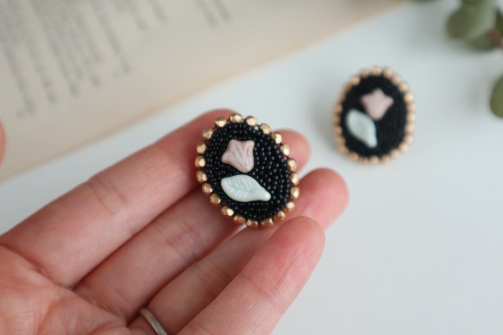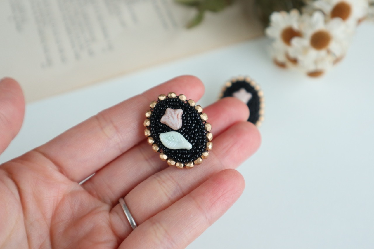 チェコビーズを縫い付けたビーズ刺繍のアクセサリー✦ ✧