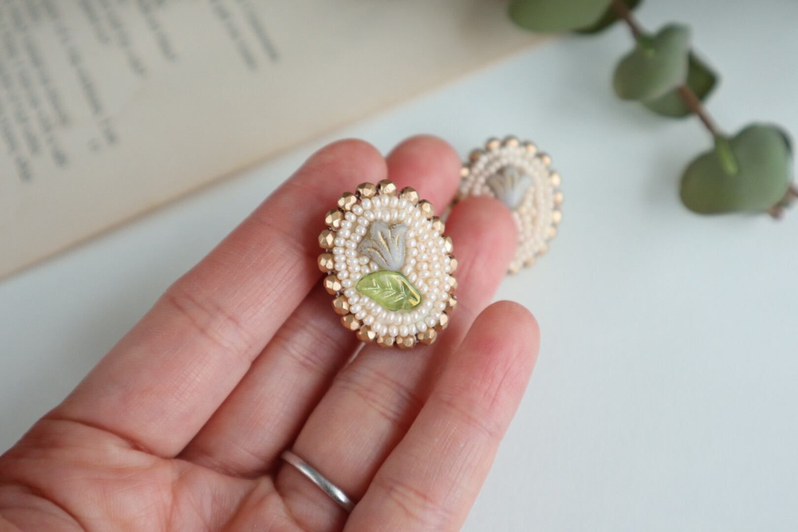 周りもチェコビーズで囲い縫いをしてまるで絵画のような見た目です。
