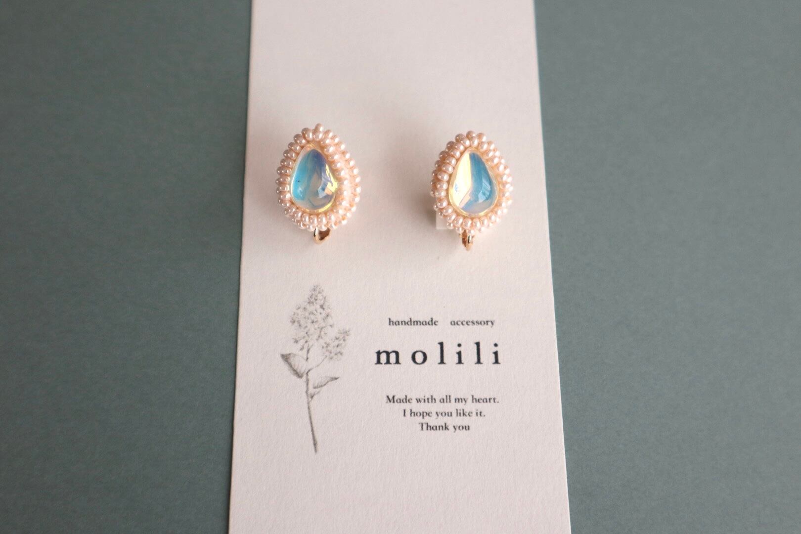 しずくオーロラビーズ刺繍の耳飾り/ aurora
