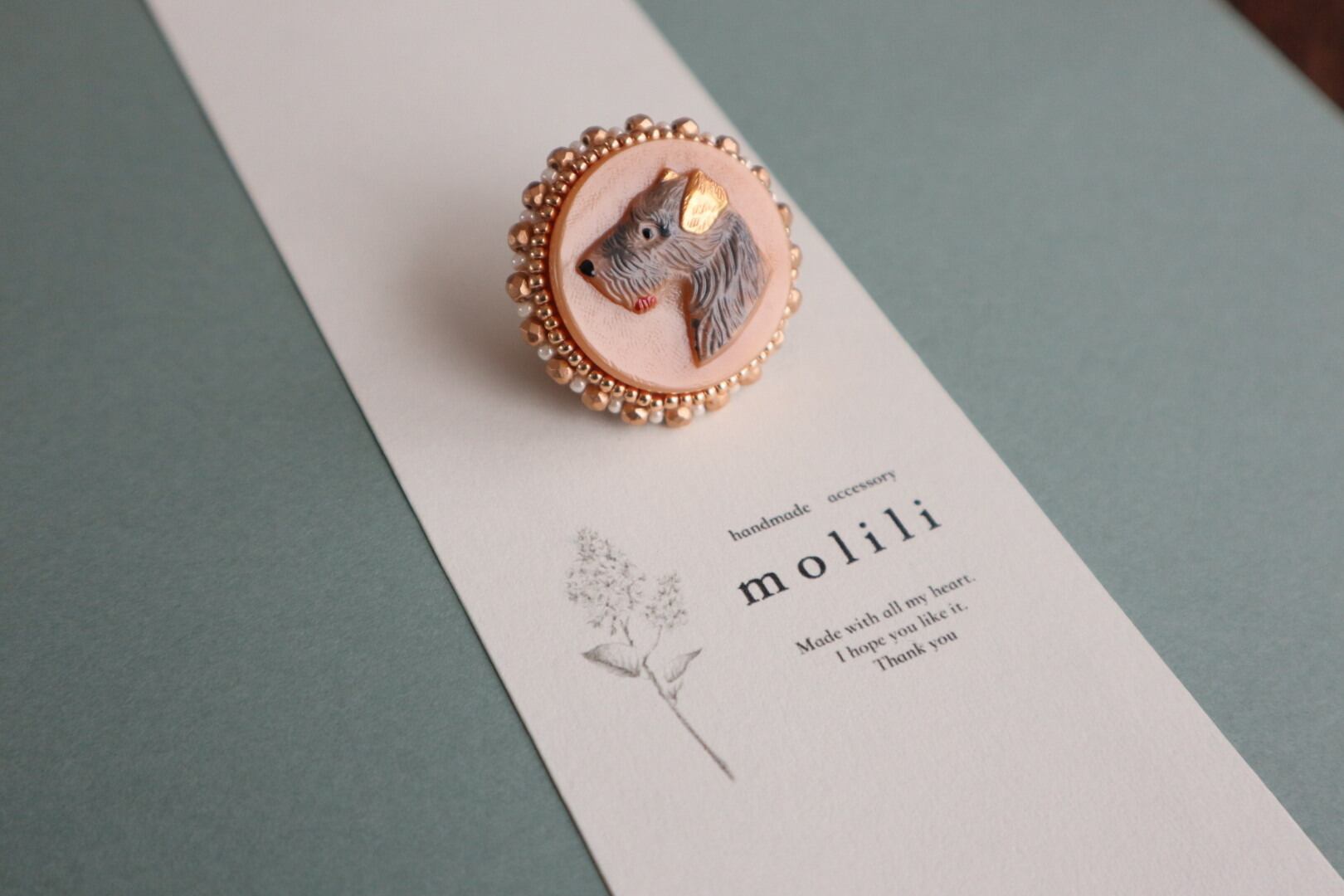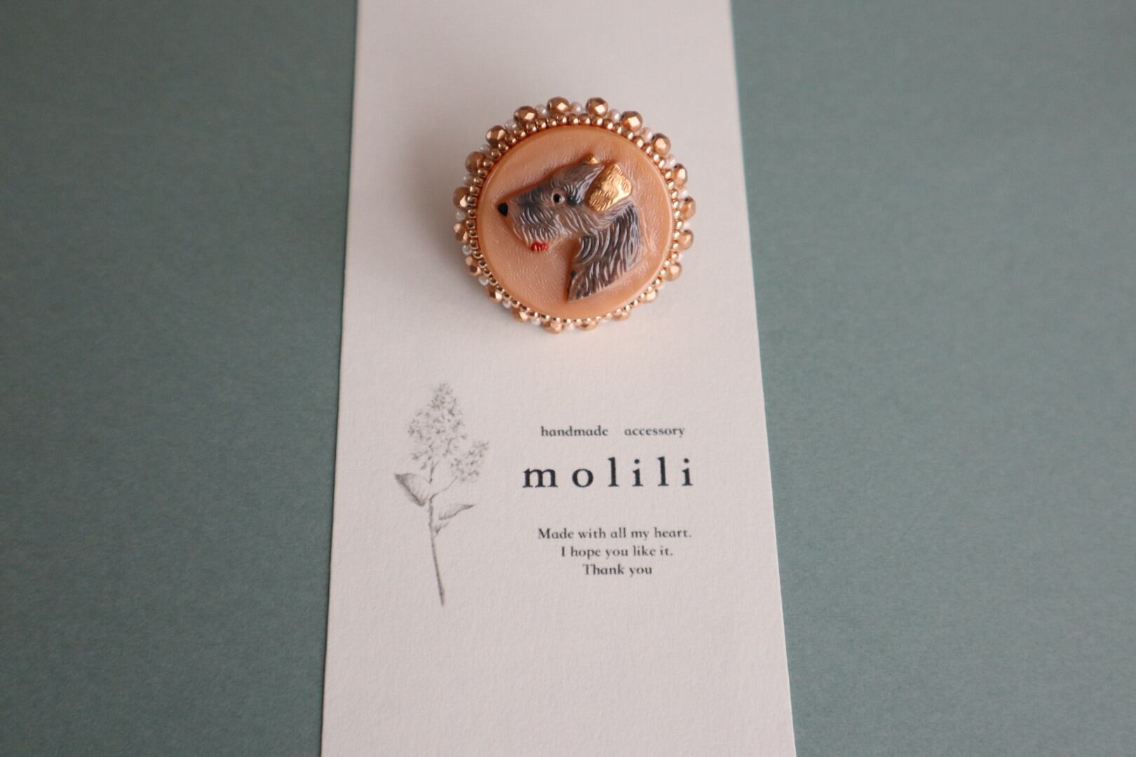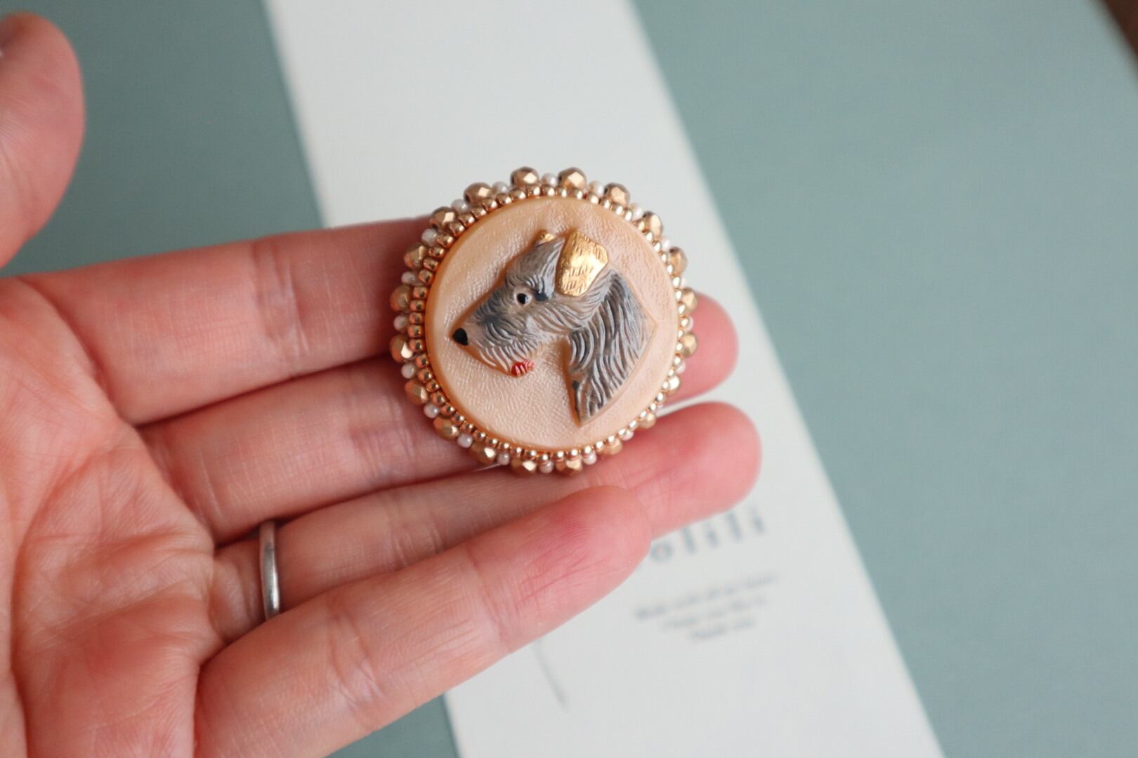アンティーク感溢れるチェコガラスハスキーをブローチ に仕立てました。